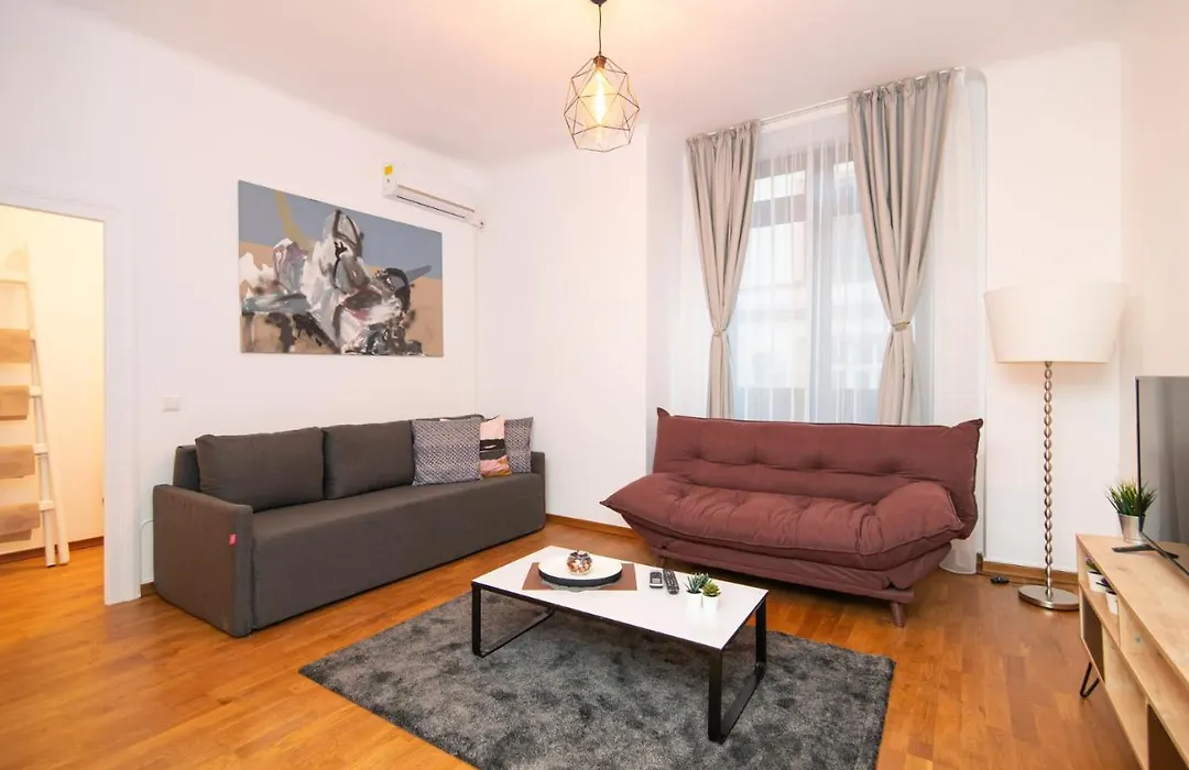 The 1-room Enjoy Beauty Of Bucharest From Lovely Apartment apartment is located in the Bucharest City-Centre district of Bucharest, and Piata Unirii 1 tube station is less than a 5-minute walk away.